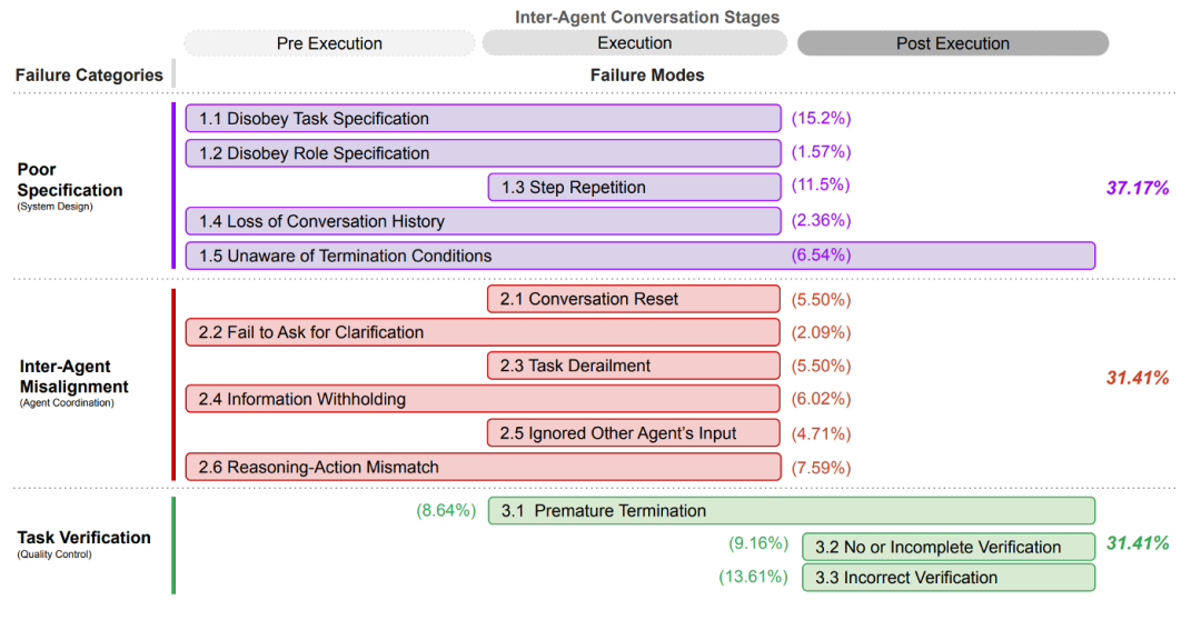 Agent执行一次任务,通常需要组合多次大模型的调用来完成工作,在总体的结果成功率上比单次的大模型调用会更加低。例如:假设平均单次调成大模型生成内容的正确率在90%,那4次组合调用后,正确率直接下降到60-70% 。