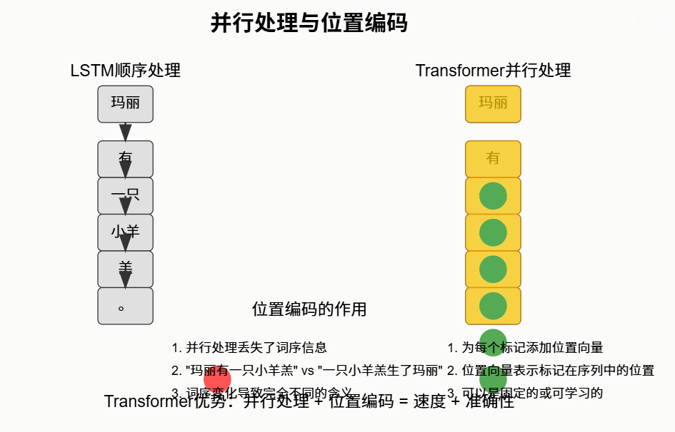 词嵌入:把每个Token 转化为 “语义向量”—— 比如 “猫” 和 “狗” 的向量距离近(都是动物),“猫” 和 “电脑” 的向量距离远,这样模型就能通过向量理解语义关联