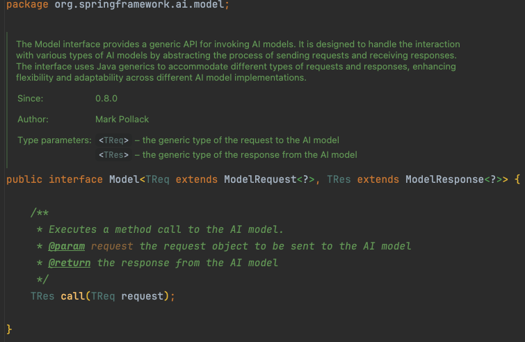 核心的API实体是 Model ,是一个带泛型的纯函数,提供了对大模型能力的顶层抽象:
