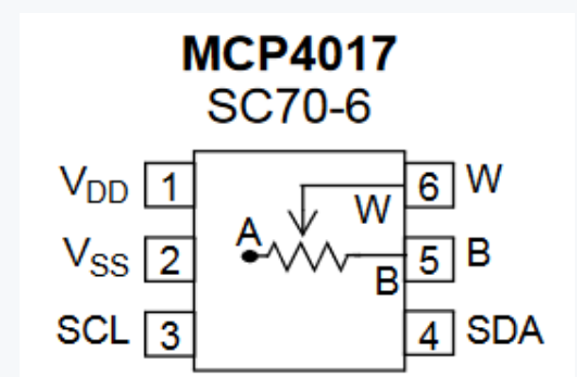 MCP4017 是一款通过 I²C 控制的数字电位器,相当于一个“能远程调节的旋钮”。