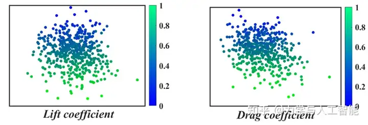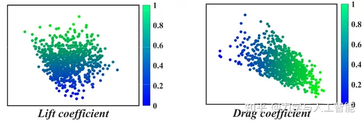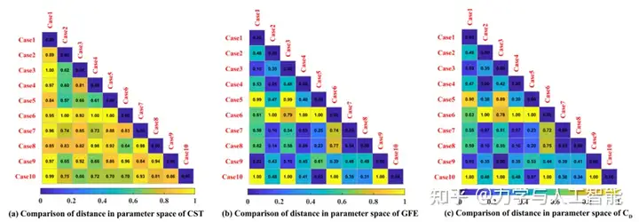 所提出的GFE方法通过限制隐藏特征之间的距离来训练神经网络。如图所示,传统CST参数之间的距离没有规律性,这使得CST参数与空气动力之间的映射关系是高维的和非线性的。使用建立的GFE模型,可以挖掘对应于CST参数的隐藏特征。如图10和图11中(b)和(c)之间的比较所示,提取的隐藏特征与目标气动力紧密相关。在这种情况下,代理模型的建模将得到增强。