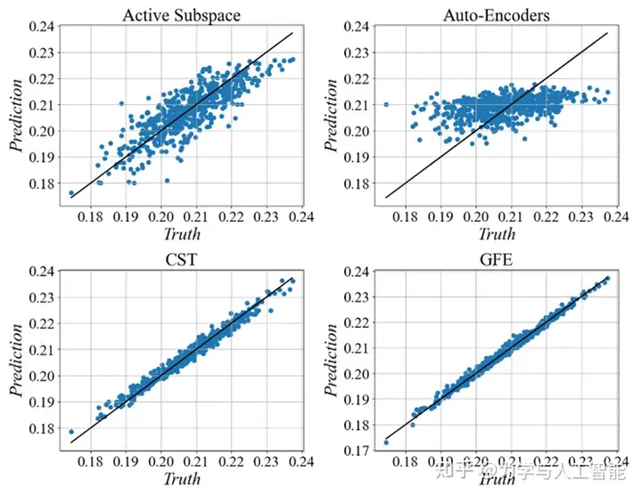 我们的目标是提出一种通用的特征学习方法,能够显著降低特征空间的维度并增强各种代理模型的泛化能力。高维问题的建模,输入特征要么依赖于知识驱动的特征组合与构造方法(例如几何表征的CST参数化,湍流建模特征设计等),要么基于数据驱动的降维方法(如POD等)进行降维,缺乏与输出耦合的设计方法。模型对比了克里金、随机森林、深度神网络方法,预测结果表明:特征提取可以有效降低系统的维度,训练算例和测试算例间的特