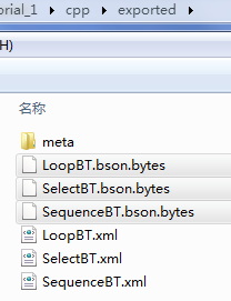 点击右下方的“导出”按钮后,可以看到在导出目录tutorials/tutorial_2/cpp/exported下,除了原有的*.xml文件之外,还有了*.bson.bytes文件,如下图所示: