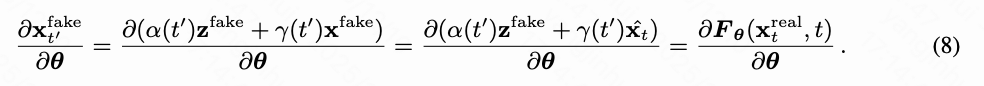 具体来说,本文任务网络学习到其自身输出的生成路径。本文采用模型生成的假样本 ,即 ,并构建相应的“假轨迹”,其中其扰动版本定义为 ,,。这里 是不同的噪声,不需要与 相同。然后,网络在此轨迹上使用负时间输入 进行以下流匹配目标训练: