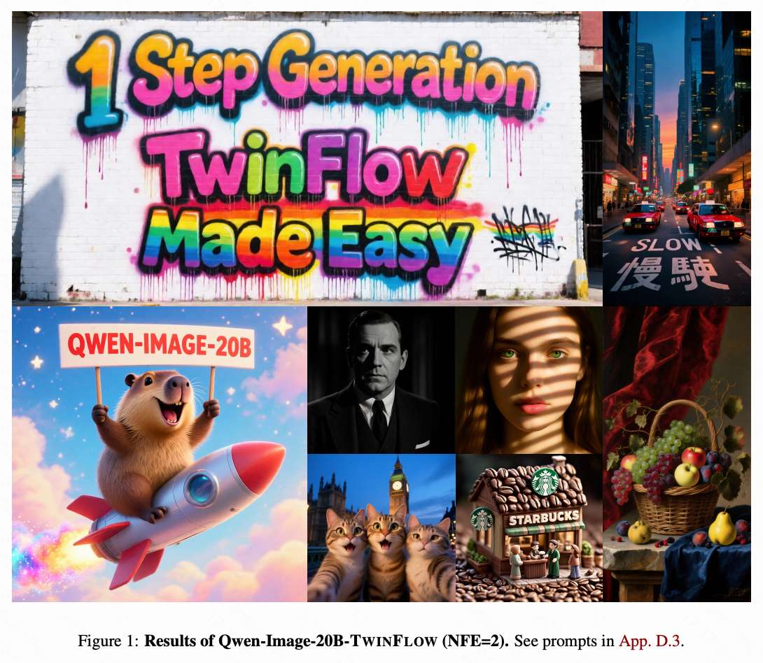1步顶100步!TwinFlow:无需教师模型,仅单步推理,Qwen-Image-20B生成速度涨100倍!