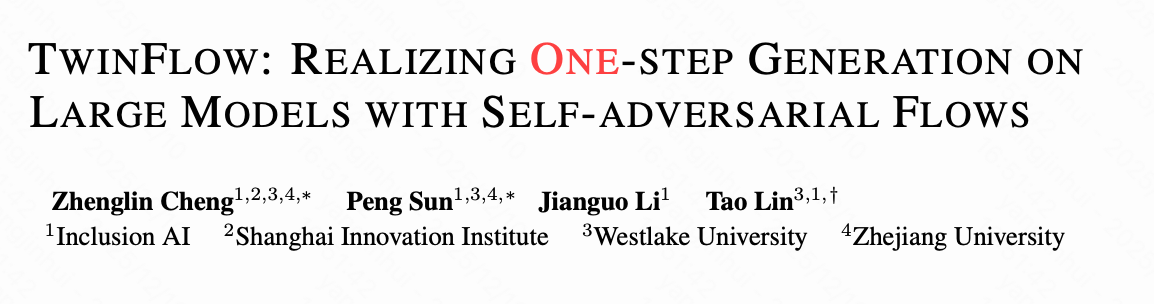 [1] TWINFLOW: REALIZING ONE-STEP GENERATION ON LARGE MODELS WITH SELF-ADVERSARIAL FLOWS