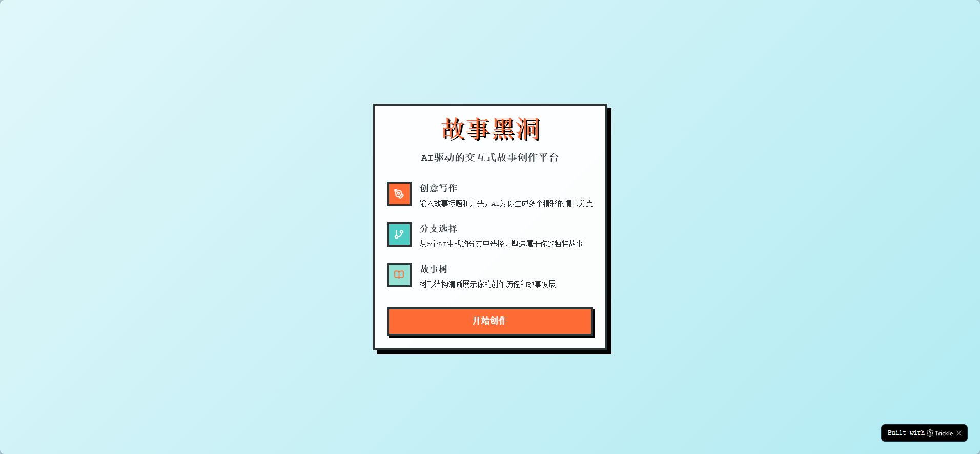 我需要开发一款Ai小说创作平台,名称为智能小说创作家,流程是用户提供故事的标题和50-200字左右的小说故事开头,提供完应用会调用GLM-4.6模型,生成后续五个情节分支概览,用户可以任意选择某一分支。选择分支之后立马调用GLM-4.6生成具体的情节,大约300-500百字左右。未被选择的分支废弃,同时用户还可以手动修改分支内容创作,选择的分支使用树形结构一级一级往下展示,但是始终展示当前的分支,持续重复。采用React技术,风格使用新粗野风格,多用白色、橙色、绿色、蓝色、灰色等,流畅的交互设计。无需登录,只需要几个页面即可,首页核心创作功能,API Key 的配置页面(保存到本地的local storage中)。