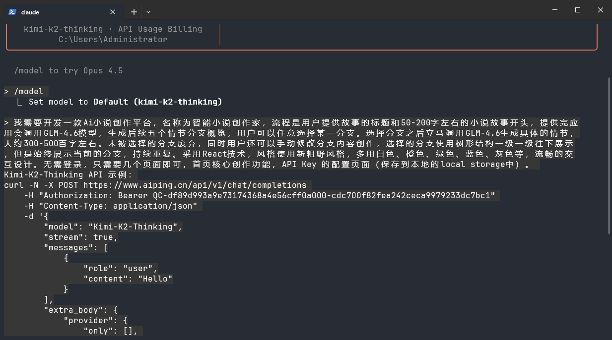 "ANTHROPIC_MODEL": "Kimi-K2-Thinking",