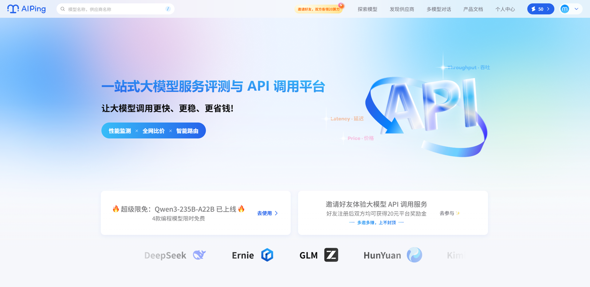 在当前大模型生态高度碎片化的背景下,开发者在调用 AI 能力时常常面临三大难题:模型选型难、接口不统一、接入成本高。为系统性解决这些问题,AI Ping 应运而生——它是一个集大模型服务平台评测与一站式调用功能于一体的专业服务平台,被开发者亲切地称为“大模型 API 服务的大众点评”。