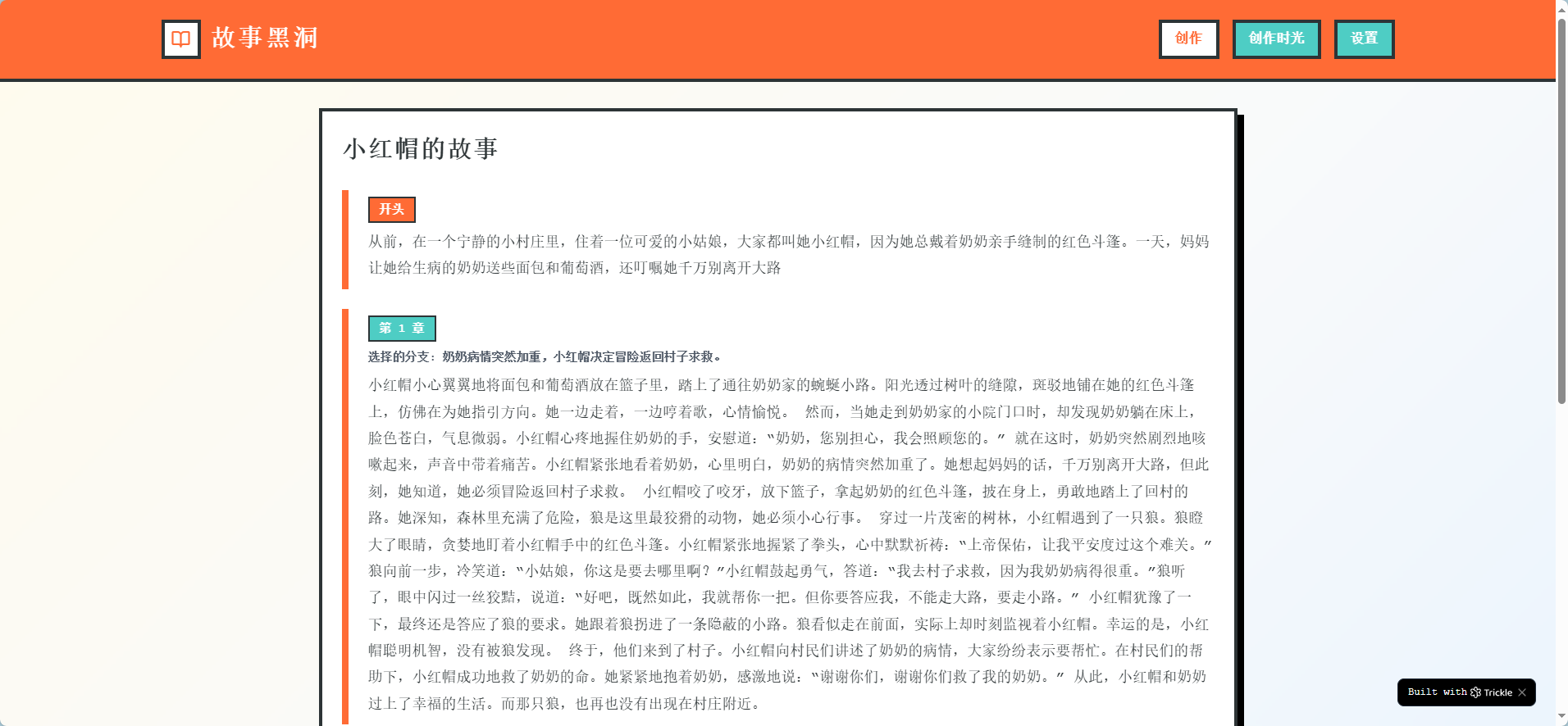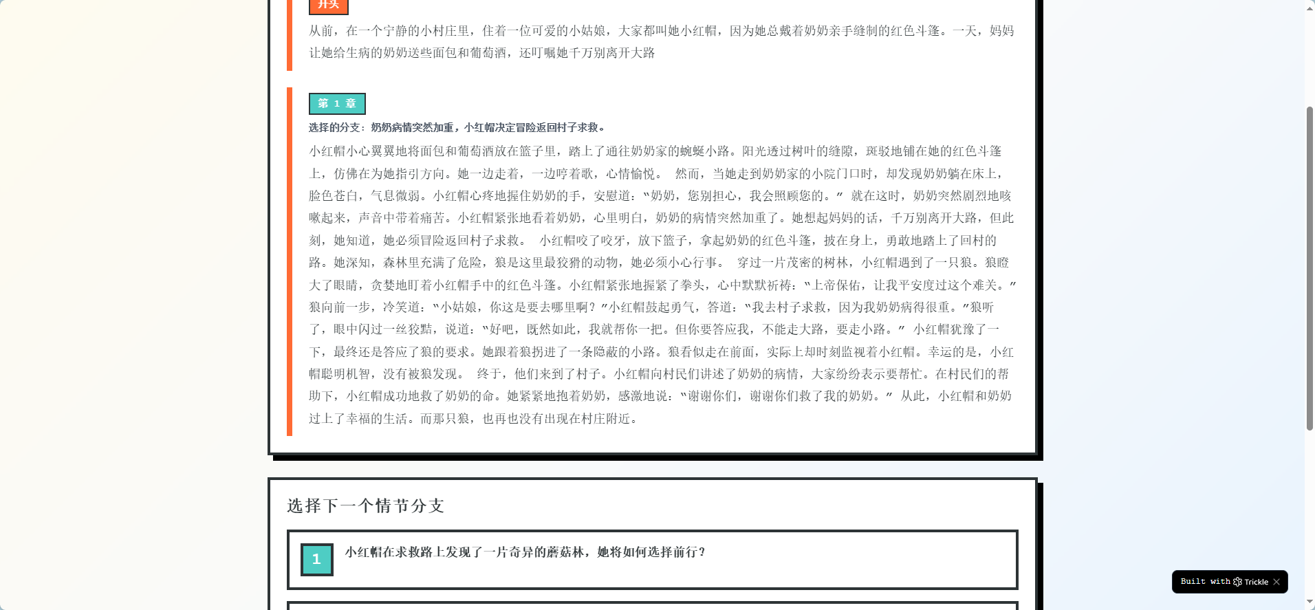 故事创作页(核心,树形结构清晰展示整个故事的发展路径与分支概览):