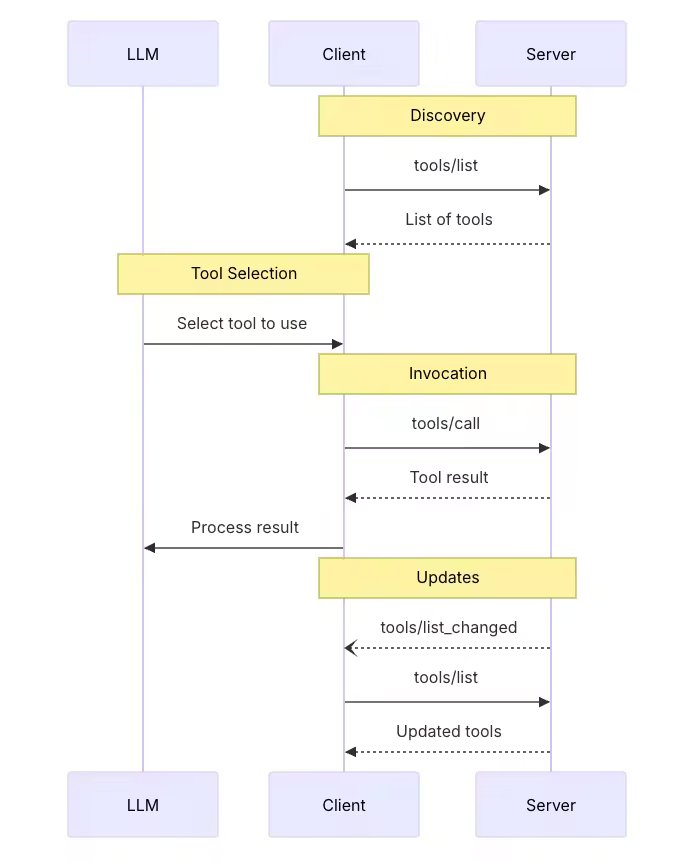 - 完整的工具清单序列化:将所有可用工具的名称、描述、以及参数的JSON Schema全部序列化为文本。