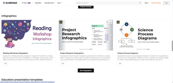 开放性的模板与呈现:Slidesgo由于在模板设计方面的积累,所以这块给你的选择性较多,适合于一些比较开放性的内容场景。