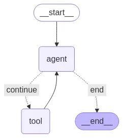 ReAct 的核心是 Thought -> Action -> Observation 的循环 。LLM 思考一下,决定调用一个工具(Action),然后观察工具返回的结果,再进行下一轮思考 。该框架本质上创建了一个反馈循环,每次完成此循环时(即每次代理采取行动并根据该行动的结果进行观察时),代理必须决定是否重复或结束循环。LangGraph 中的 ReAct 代理模块通过预定义的系统提示实现,与该模块一起使用的 LLM 不需要任何其他示例即可充当 ReAct 代理。