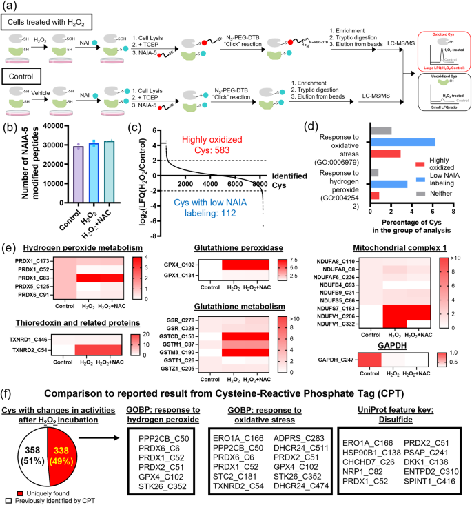 这是文章的另一个重磅成果。研究人员利用NAIA结合高通量质谱技术,对整个细胞内的蛋白质半胱氨酸进行了一次“普查”。