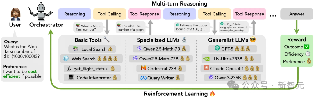 英伟达研究团队的新模型Orchestrator仅有 80 亿参数(8B)的模型,不仅比以往的工具使用类AI智能体准确率更高、成本更低,还能在工具选择上精准对齐用户的偏好。