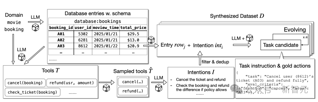 作为首个大规模、可验证的多轮工具调用合成数据集:ToolScale通过大模型自动构建10个领域(金融、医疗、航空等)的模拟环境(含数据库+工具API),再生成43万条含人工标记的最佳工具调用轨迹的任务。