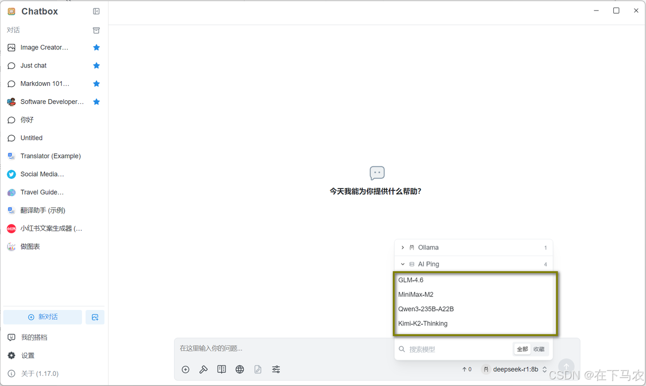 使用ChatBox+AIPing的方式,在ChatBox中配置AIPing的API 秘钥,就能使用AIPing的所有大模型。