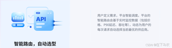 既然已经集成了如此多的大模型,AI Ping的又一强大功能就呼之欲出了。当开发者发送 API 请求时,AI Ping 的 智能路由 功能会根据用户设定的业务需求 — 比如希望优先低延迟 / 高吞吐 / 低成本 / 长上下文——动态在后端供应商之间选择“当前最优”的服务商,并将请求转发给它。
