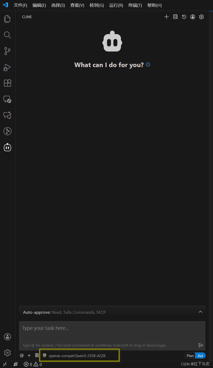 VSCode 作为开发者最青睐的编辑器之一,拥有丰富的 AI 插件,我们就可以通过插件Cline来配置使用AI Ping,Cline是一款强大的 VSCode 插件,旨在通过集成多种 AI 模型来提升开发效率。