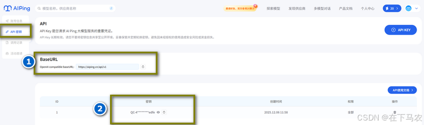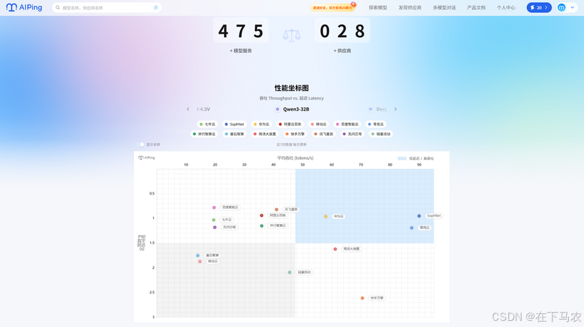 大家好,我是马农,最近在工作之余摸鱼的时候,偶然发现一款超级好用一站式大模型调用和评测平台——AI Ping。通过该平台不仅能实时查看各个服务厂商不同模型的性能排行榜,还能只用一个API使用数以百计的大模型服务,简直是工作生活效率提升的利器。最最最重要的是,还有多款主流模型免费使用,这么好用的工具,当然要和大家一块薅啦😛。我们可以在https://aiping.cn/#?channel_partner_code=GQCOZLGJ进行注册使用,现在使用这个链接注册还有30元算力金赠送。今天,马农就给大家介绍一下AI Ping,然后从头到尾给大家演示一下如何免费使用AI Ping的的免费模型。马农会分别站在开发者的角度和非开发的角度给大家带来两种不同的AI Ping使用方式。让我们开始吧:
