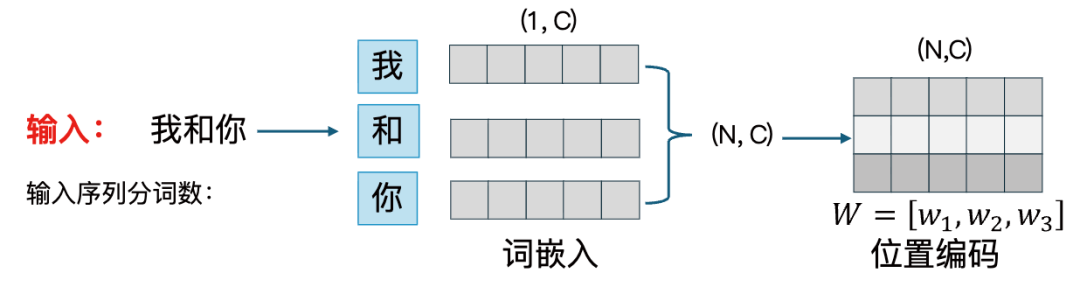 假设有输入序列可被分词为,对于其中的每个词,可以将其转变为维度为的嵌入向量,整个输入序列可以用输入矩阵表示: