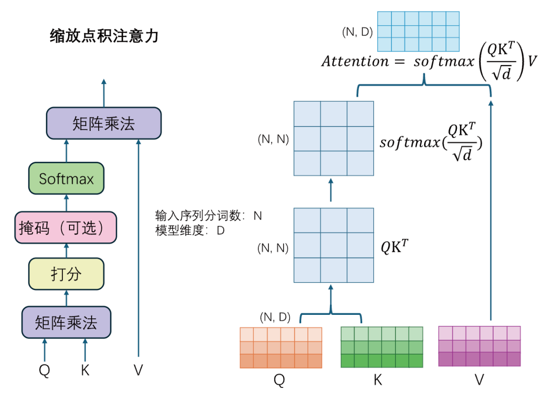 缩放点积注意力算法是自注意力的一种实现形式,它通过如下公式计算: