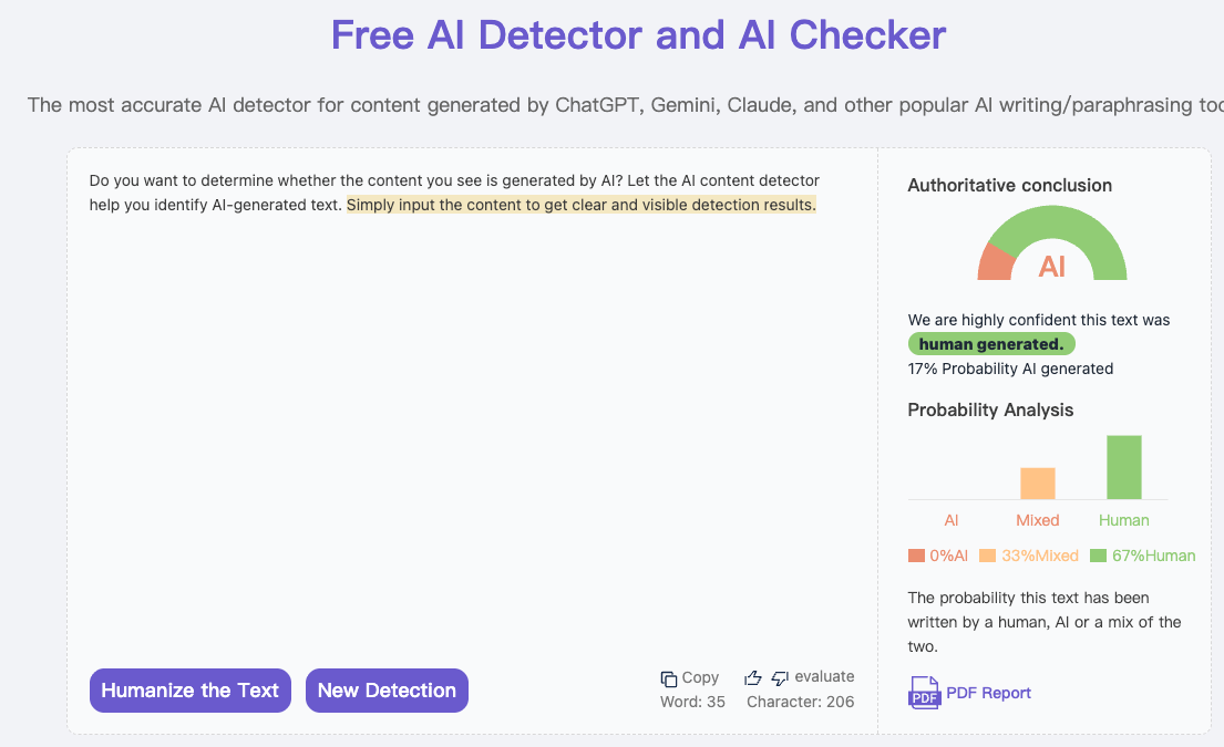 mydetector.ai 的 AI 内容检测 模块融合了上述技术,同时利用自研算法与行业数据持续优化检测模型,使得判别结果更加稳定和可信。