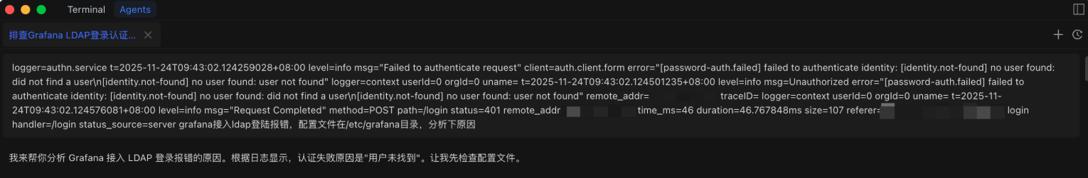 日志显示找不到 ldap 用户,小丰立刻开始了标准排查流程:
