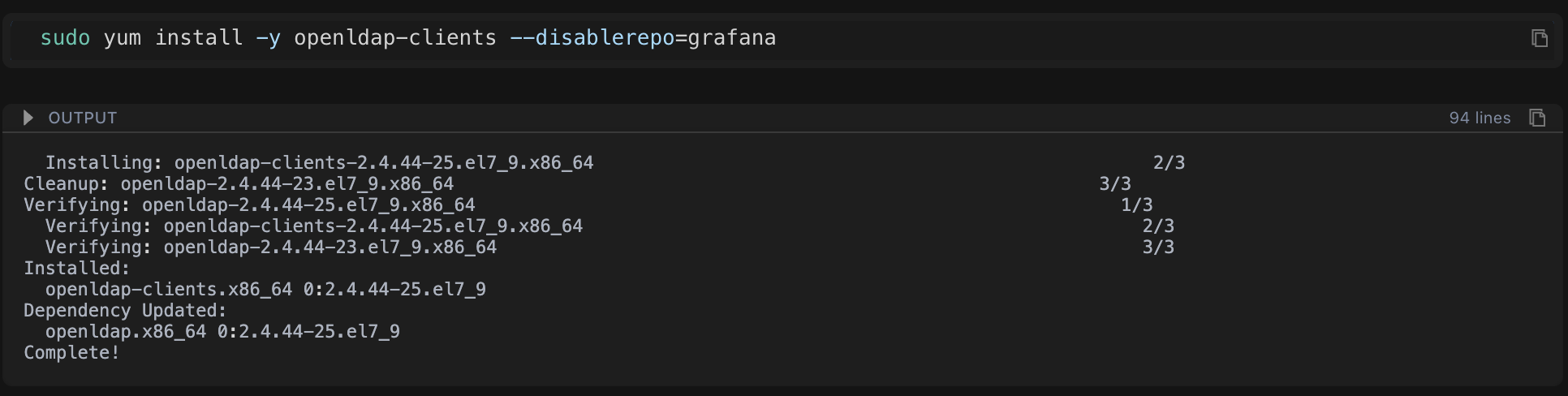 sudo yum install -y openldap-clients --disable repo=grafana