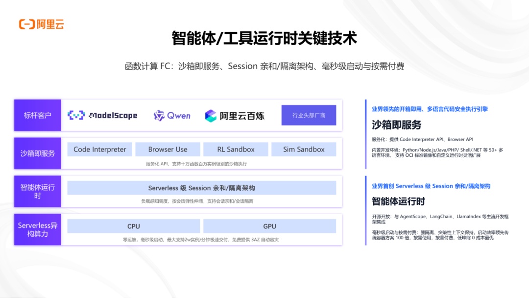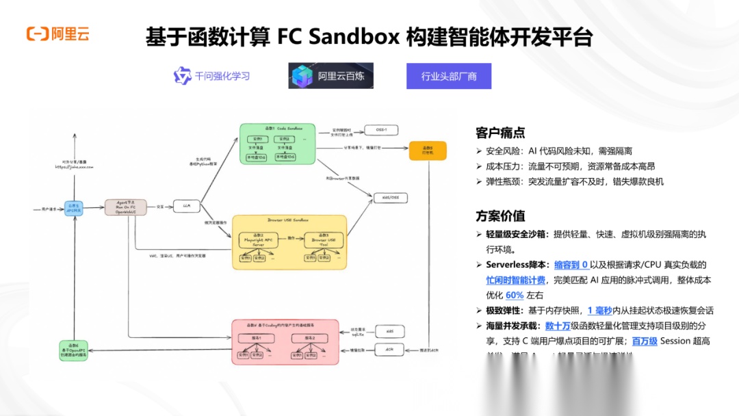 2025企业级AI应用开发报告聚焦企业级 AI 应用开发的全流程实践,详解从技术选型、核心技术到生产落地的关键路径,为企业 AI 转型提供实操指引。企业级 AI 应用开发正转向 AI 原生架构,以 Agent 为中心、状态优先、任务驱动协作成为核心特征。Serverless 架构凭借弹性降本、免运维、异构算力支持等优势,成为 AI 原生应用的最优运行时选择。其关键技术涵盖毫秒级冷启动、GPU 切分使用、安全沙箱隔离、模型加载加速等,有效解决高并发、高成本、低容错等业务痛点。落地层面,阿里云函数计算 FC、Serverless 应用引擎 SAE 等产品已形成成熟解决方案,支持多语言运行环境、主流 AI 框架集成与全栈可观测能力。吉利汽车、魔搭社区、领克等标杆客户案例验证了方案价值,实现算力成本优化 33% 以上、开发效率提升 50% 等成效。报告指出,企业级 AI 应用开发正朝着简单易用、安全高效、弹性低成本的方向演进,助力企业快速释放 AI 价值。