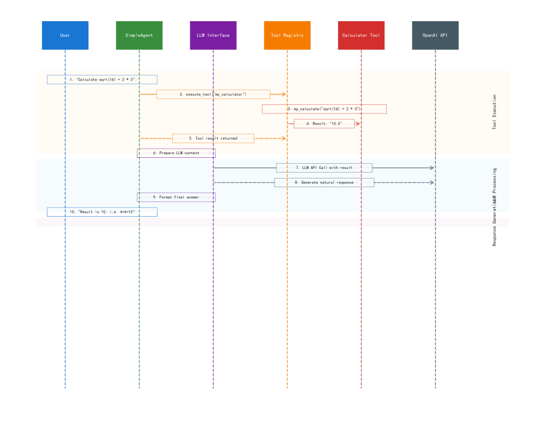 回顾本文,我们完成了一项富有挑战的任务:一步步构建了一个基础的智能体框架——HelloAgents。这个过程始终遵循着“分层解耦、职责单一、接口统一”的核心原则。