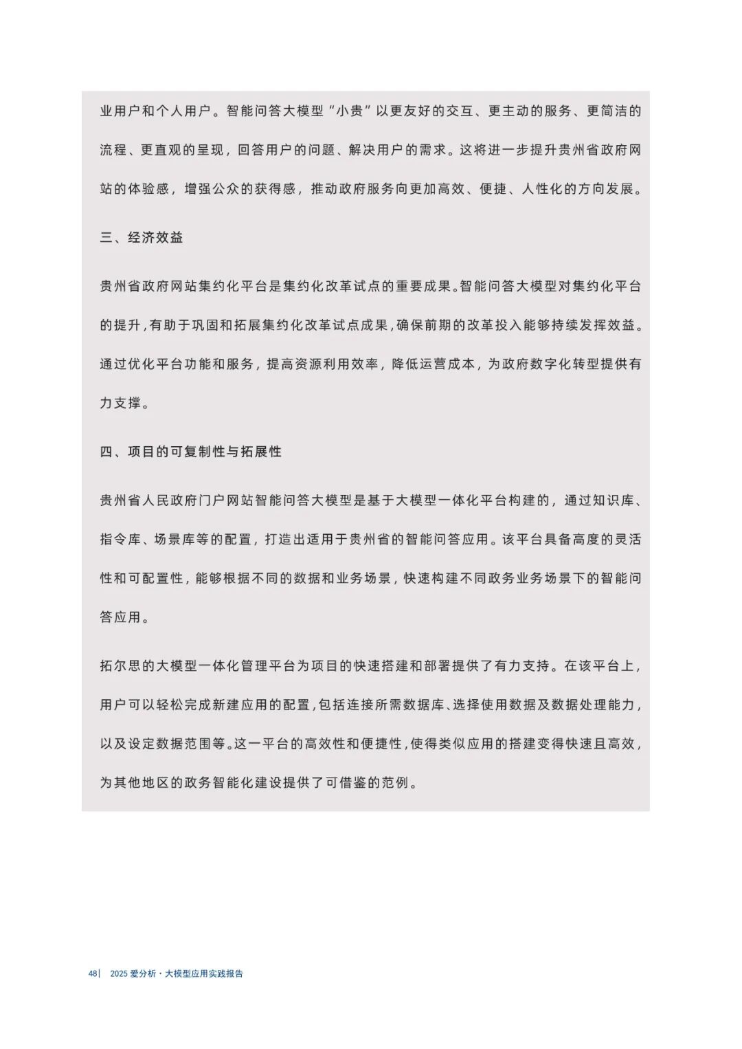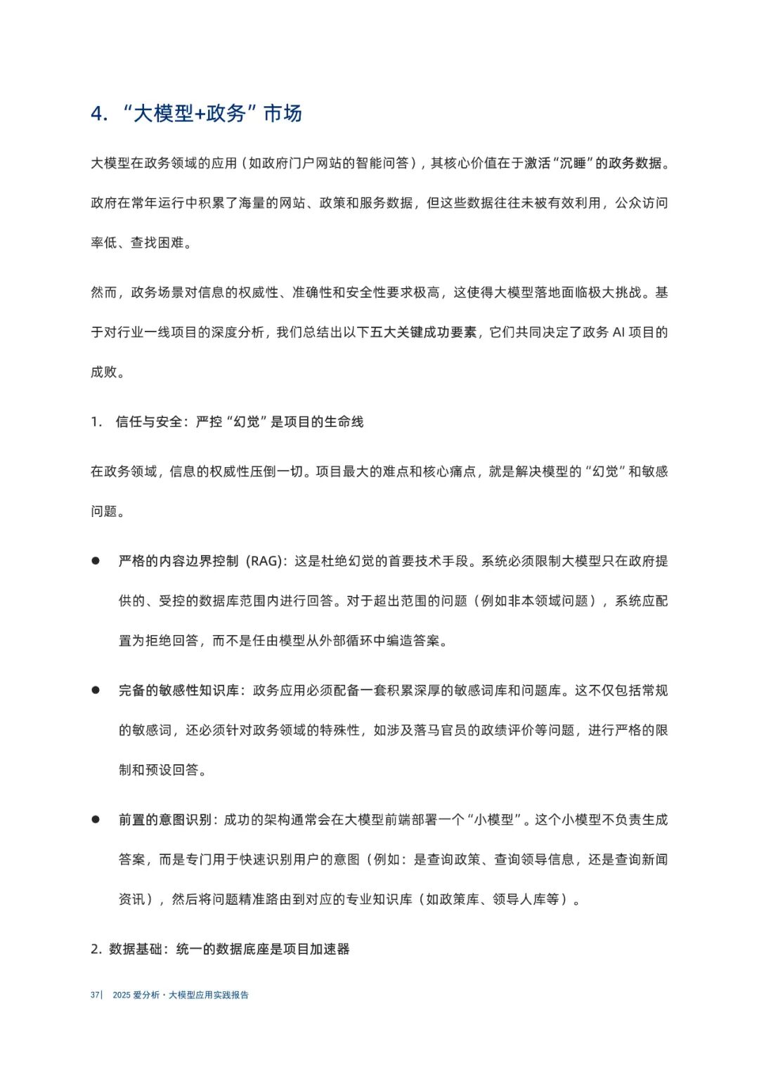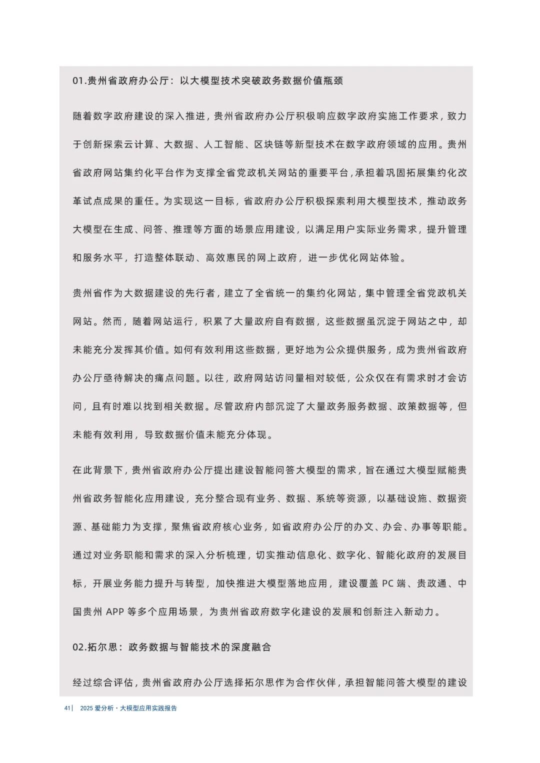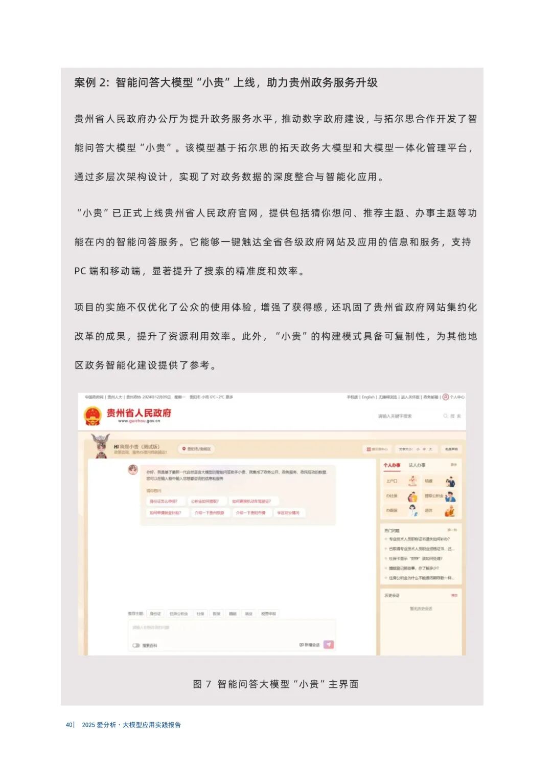 - 大模型+政务:强调政务AI的五大关键要素(如信任安全、数据基础、领域Know-How),并以贵州“小贵”智能问答系统为例,展示大模型在政务服务中的落地路径。