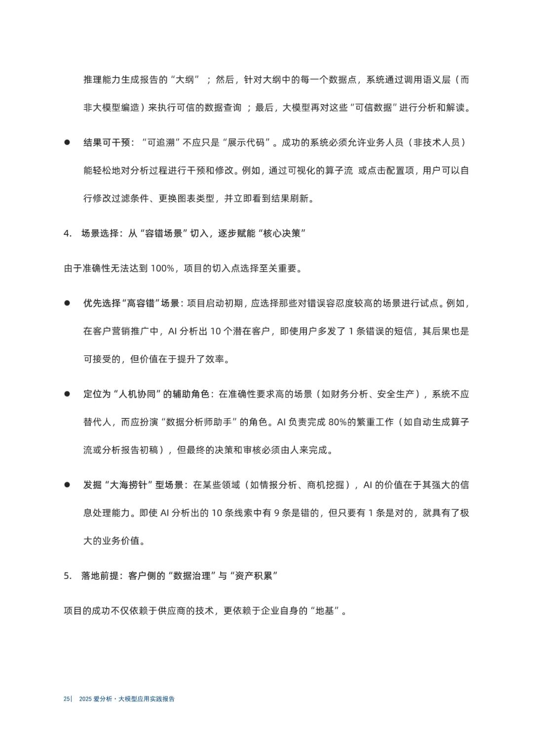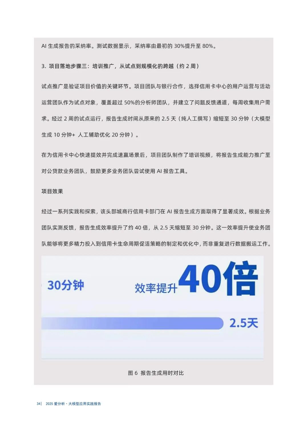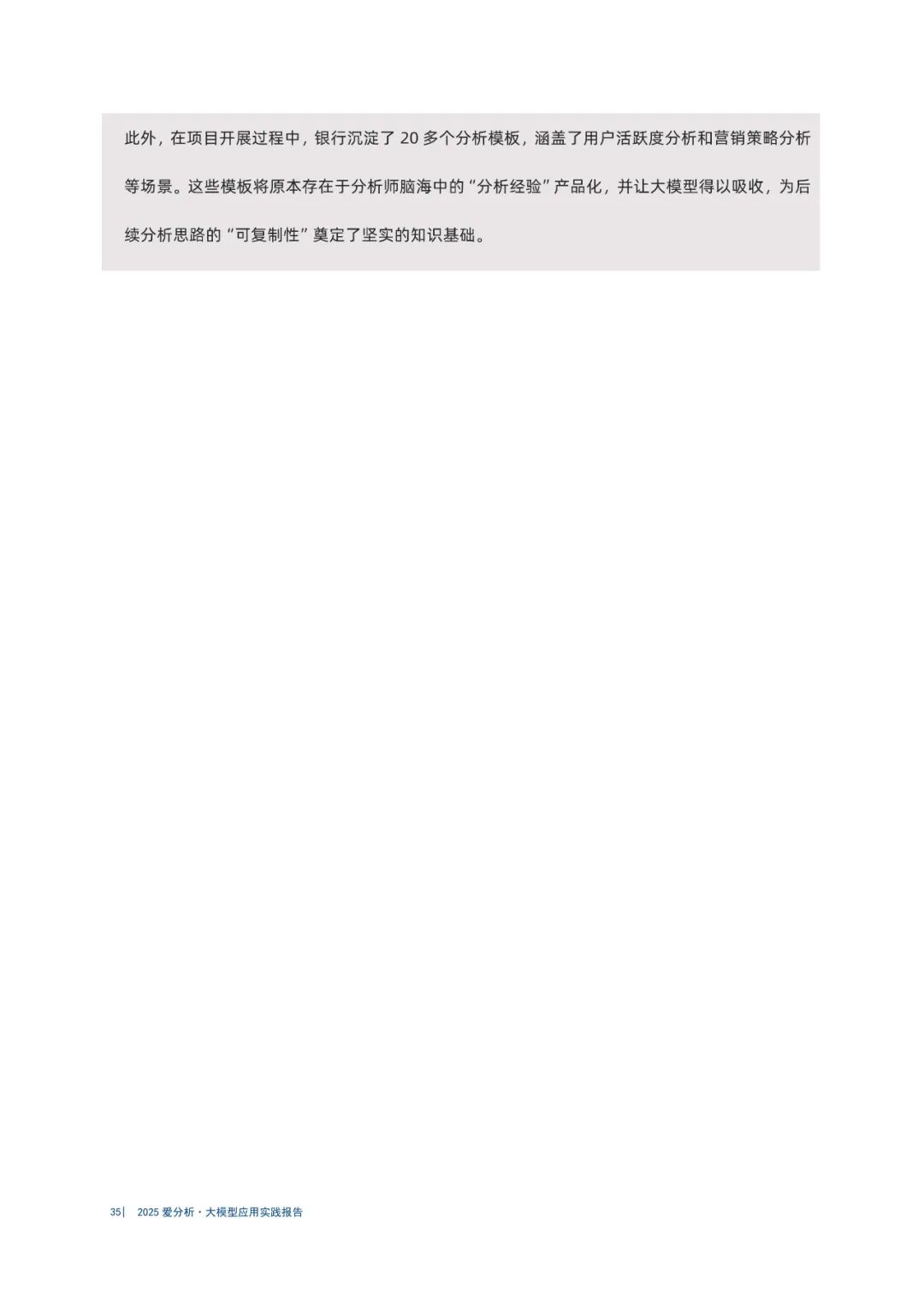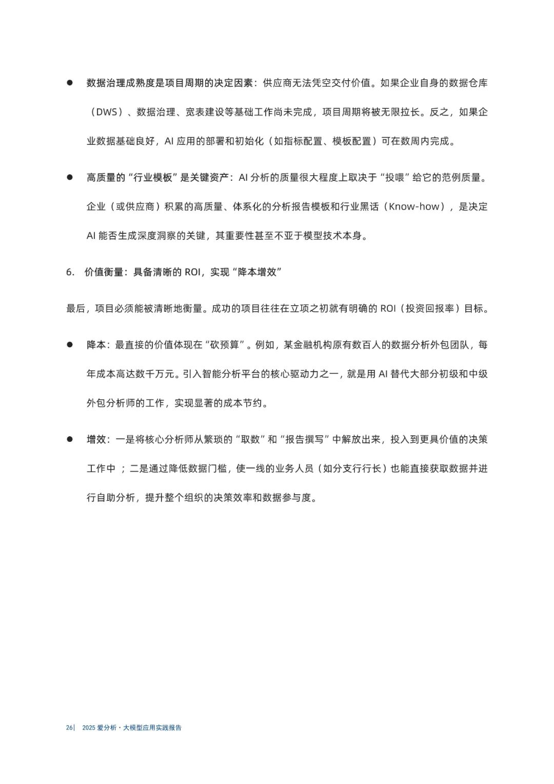 - 对话式智能分析:提出六大成功要素,包括价值定位、技术架构、信任构建、场景选择等,并结合城商行案例(数势科技SwiftAgent)说明如何实现从“取数”到“报告生成”的跨越。