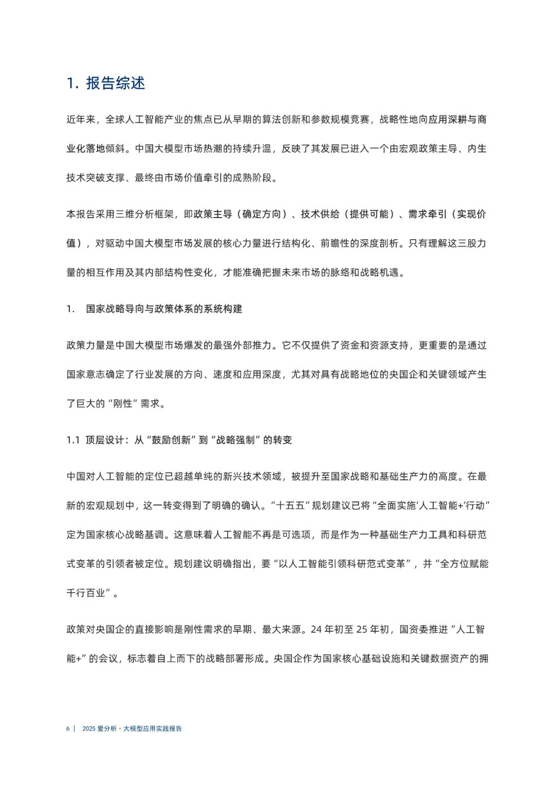 报告采用“政策主导、技术供给、需求牵引”三维框架,系统分析中国大模型市场的发展逻辑: