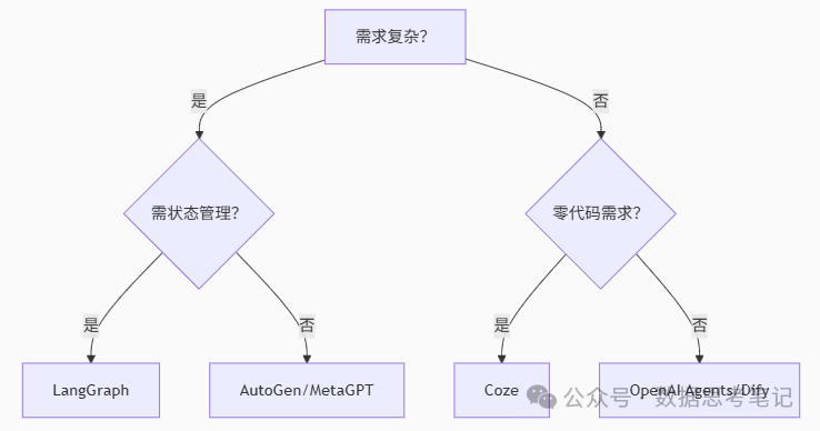 本文对LangGraph、AutoGen、Dify、Coze等主流AI Agent开发框架进行了全方位对比分析,从核心定位、技术特性、典型场景、成本模型和社区支持等多个维度评估各框架特点。文章针对复杂流程管理、多智能体协作、快速原型开发等不同需求场景提供了选型建议,并从技术深度、落地速度、生态依赖和长期成本等角度为企业或个人开发者提供了决策参考,帮助不同技术背景的人群选择适合的AI Agent开发