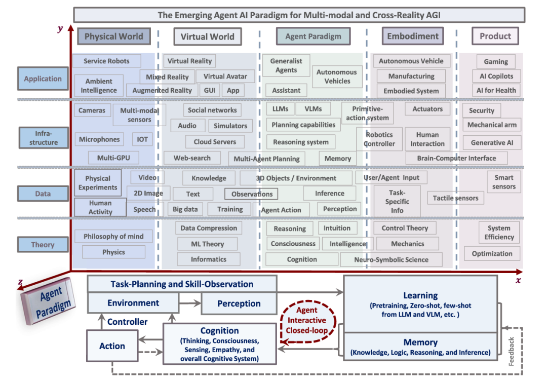 当家庭机器人精准分拣快递、自动驾驶车队默契避让、医疗 AI 协同完成手术规划,这些场景的背后,正是多智能体架构技术的突破。李飞飞领衔 14 位斯坦福与微软专家撰写的 80 页综述《Agent AI: Surveying the Horizons of Multimodal Interaction》,不仅为单智能体建立了 “感知 - 认知 - 行动 - 学习 - 记忆” 的核心框架,更勾勒出多智能体协同的架构技术蓝图,成为 2025 年 “智能体元年” 的奠基之作。