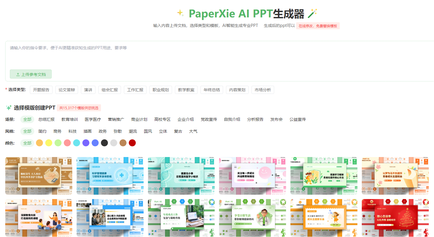 在信息爆炸的时代,有效的视觉传达已成为一项基本素养。PaperXie 的AI PPT功能,代表了一种务实的AI赋能方向:它不追求“全自动设计”,而是通过“内容解析 + 模板匹配 + 在线编辑”的协作模式,将用户从繁琐的排版与美化中解放出来,使其能更专注于核心内容的打磨与表达。