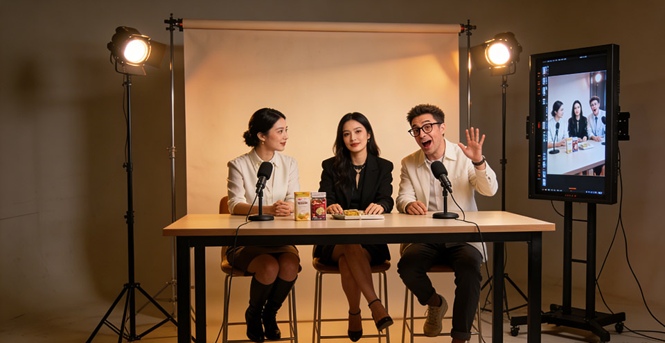 镜头调度、灯光、背景布置也更加专业。舞台区、休息区、试用区都有明确划分,可视为一个小型实时内容工厂。