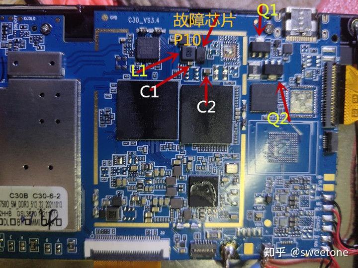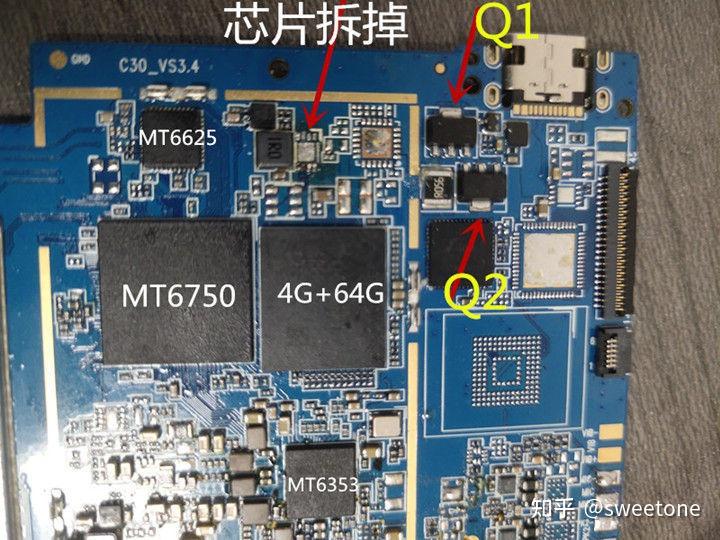 该机主控芯片是MT6750M,电源管理芯片是MT6353V。从百度上很少的不收费资料可以知道MT6353V的充电电路是外接第三方芯片的。故本人分析该P10芯片,更倾向于其是开关型充电芯片。其内部击穿损坏产生的短路电阻,只会多消耗充电器及电池电能,减慢充电时间,以及异常发热,对主控电路工作影响不是很大。