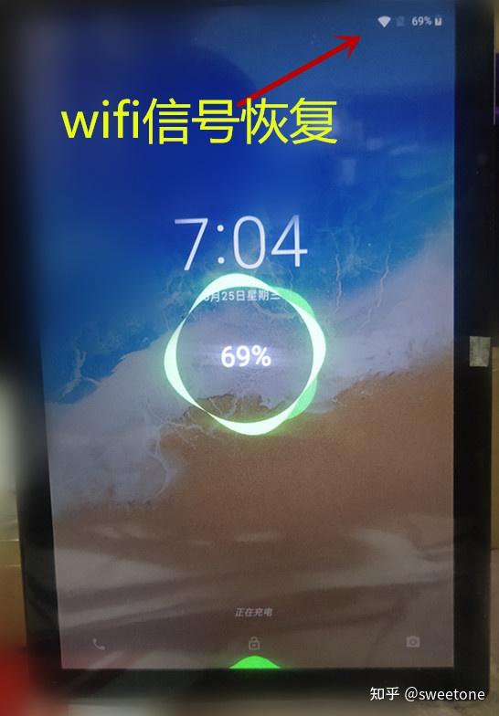 但是该平板电脑也有了新问题,接收WI-FI的灵敏度变低了。原先,机器离WI-FI无线路由器有三四个房间距离时,信号也较好,联网看视频很流畅。但是,现在机器离WI-FI无线路由器有一个房间距离时,信号图标就只有一格了,只够勉强能上网;离开无线路由器有两个房间距离时,已经无信号,机器无法上网。