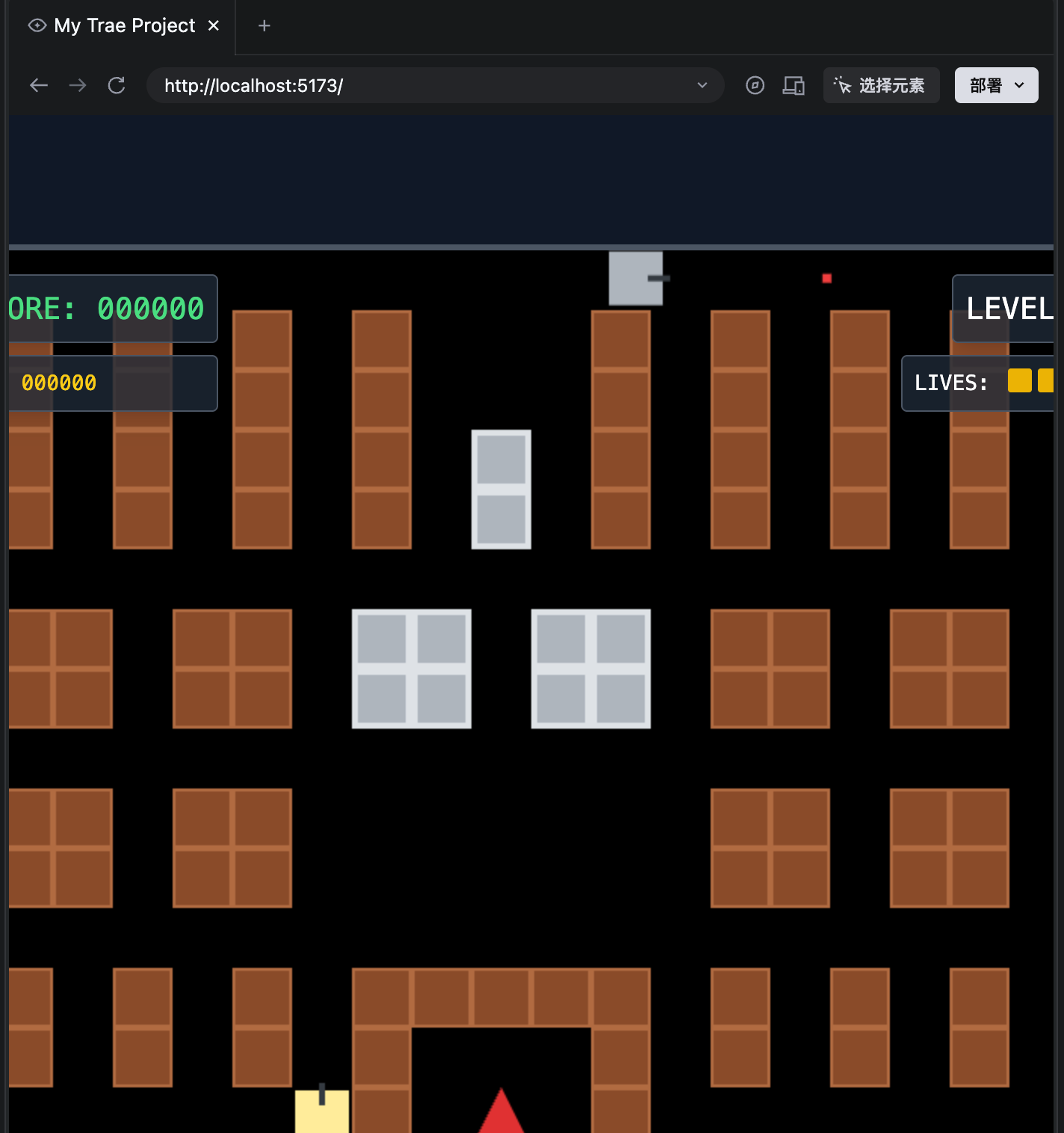现在AI编程工具已经能做到一句话的需求生成一个完整的项目了,今天我们用Trae solo来试着复刻小时候的游戏《坦克大战》,并且部署上线,下面是演示效果和地址: