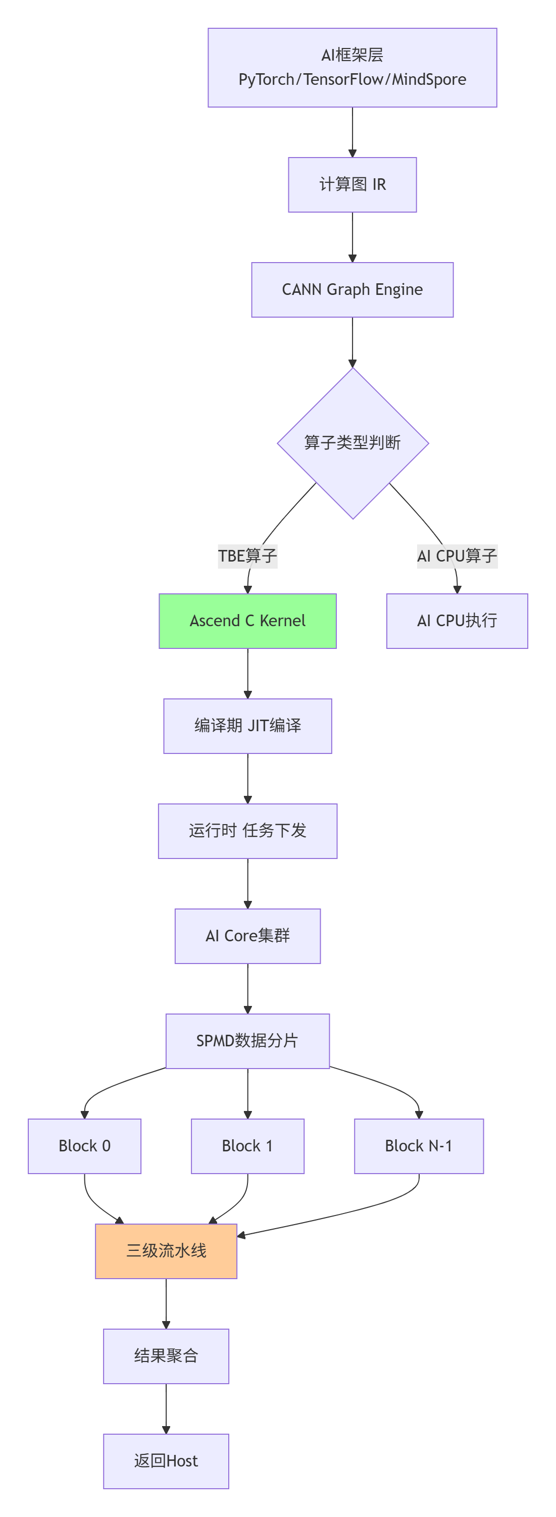 图1:Ascend C Kernel在CANN全栈中的执行路径