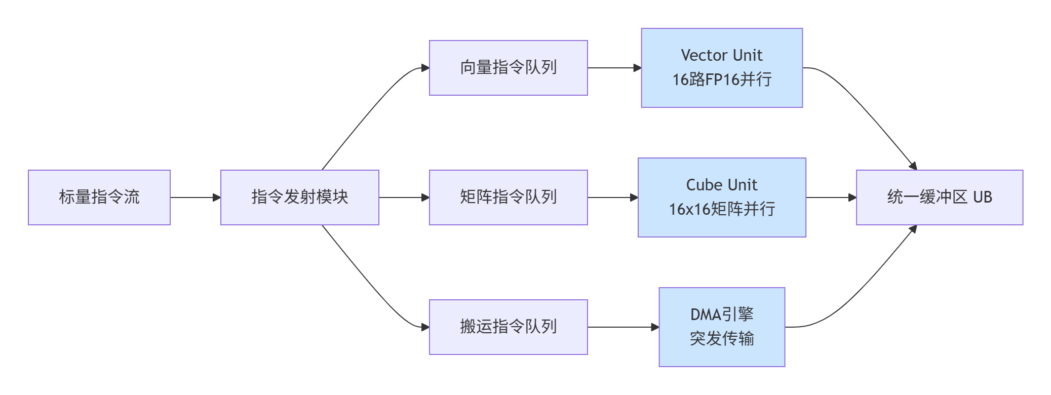 SIMD(Single Instruction Multiple Data) 则是微观执行机制。每个AI Core内部的Vector单元和Cube单元都是典型的SIMD架构: