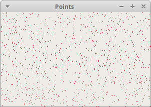 每次调整窗口大小时,都会生成一个绘制事件。我们用size方法得到窗口的当前大小。我们使用窗口的大小将点分布在窗口的整个客户端区域。