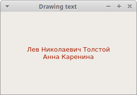 drawText方法在窗口上绘制文本。paint事件的rect方法返回需要更新的矩形。使用Qt。对齐。AlignCenter我们在两个维度上对齐文本。