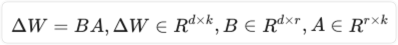 其中和分别为输出和输入特征维度。`r`是LoRA微调的秩,通常 r << min(d,k)。