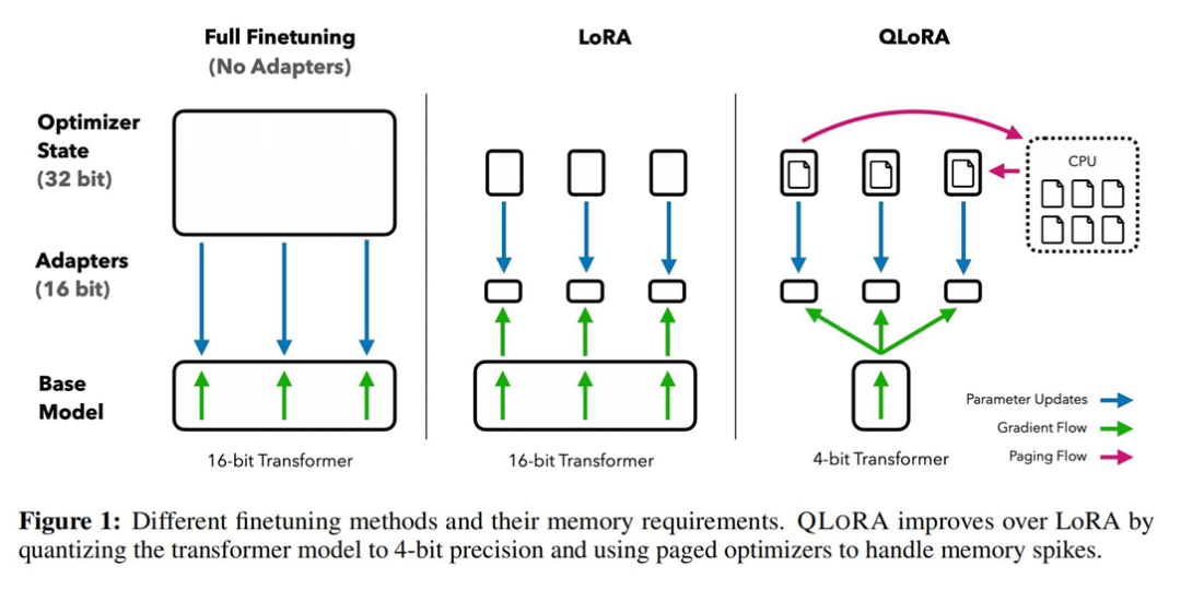 QLora = Lora + 量化技术 (量化的是模型矩阵的参数,而不是 AB 矩阵的参数)