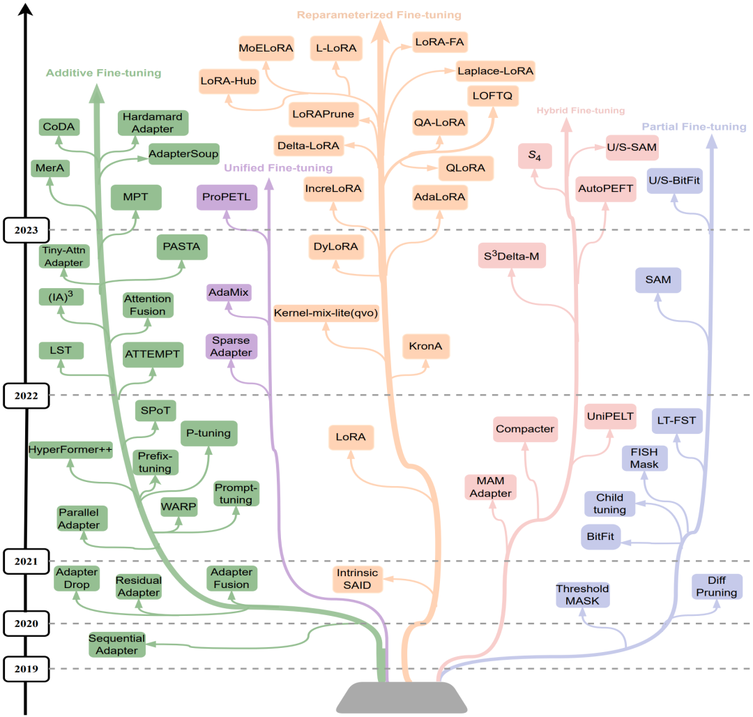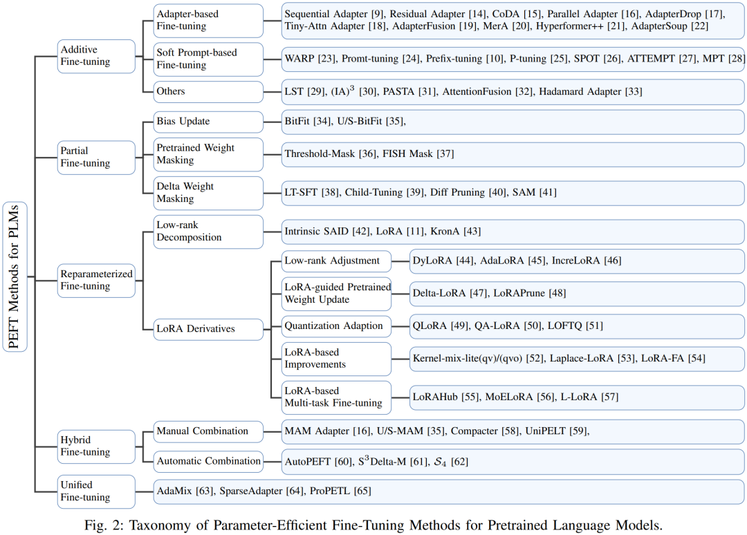 混合微调方法,结合多种微调策略(如部分微调+附加式微调),灵活平衡计算效率和模型性能。