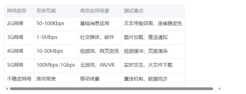 渐进式测试:从固定带宽到动态波动,从单一到混合网络条件