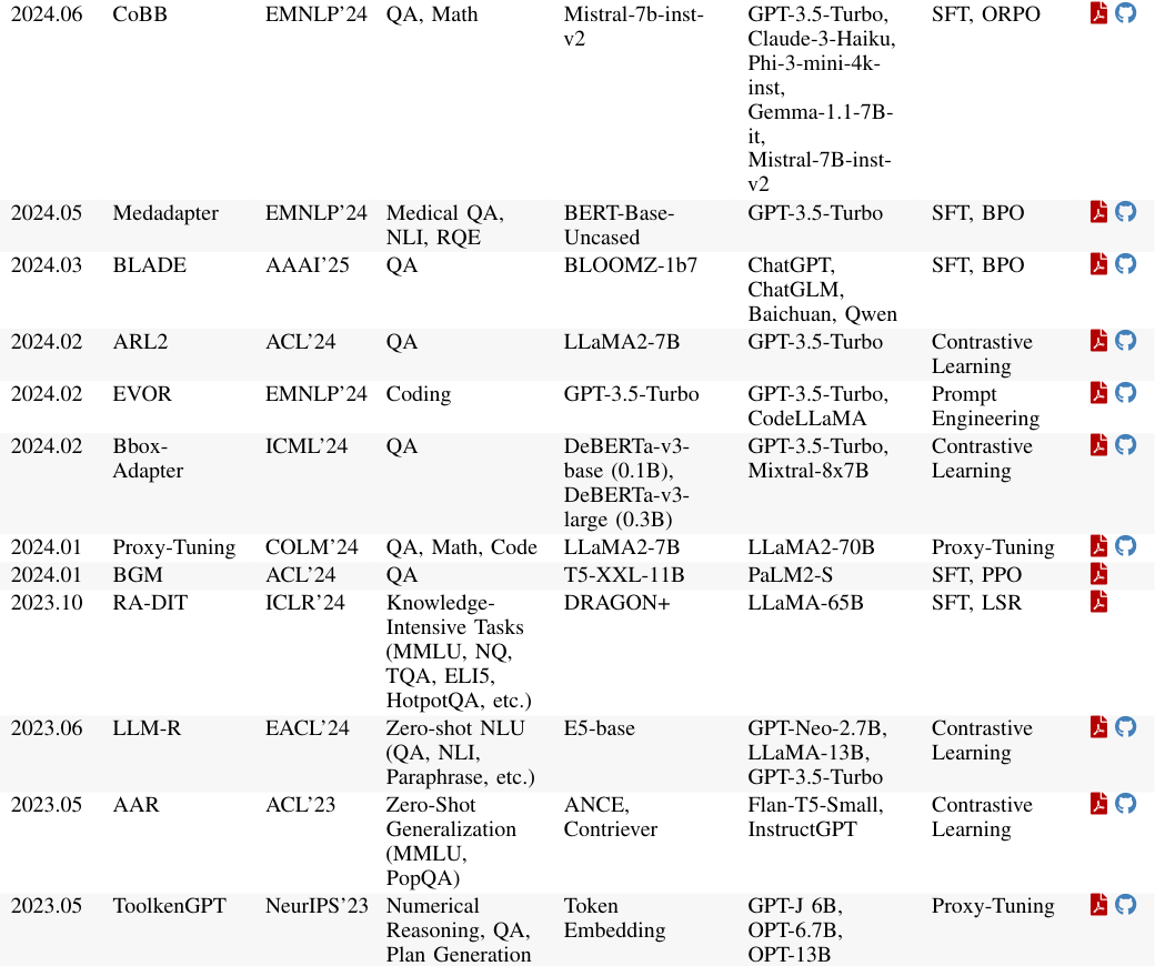 REPLUG和LLM-R等方法提出,应该利用冻结的LLM给出的反馈(如困惑度降低程度或生成的答案正确率)来训练检索器。